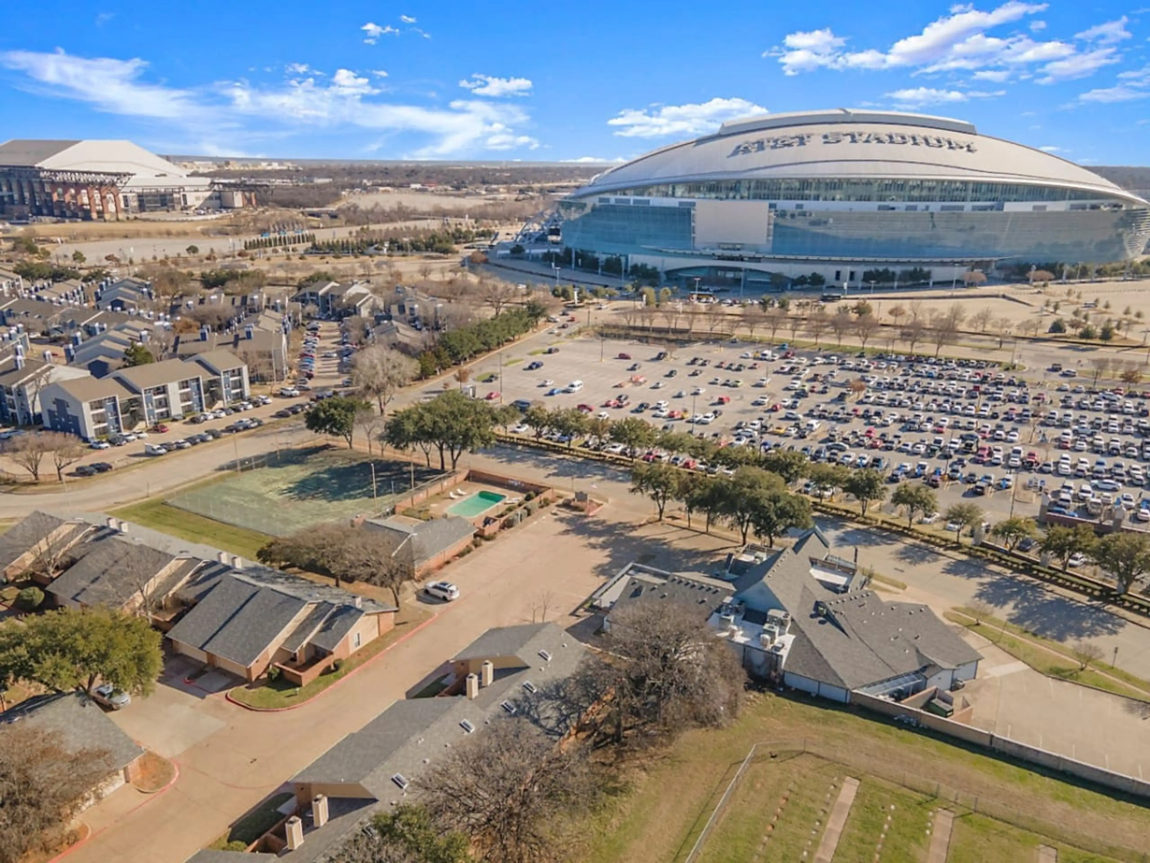 The whole group will enjoy easy access to everything from this centrally located townhome. 5 minute walk to ATT Stadium, 10 Minute Walk to Globe Life Feild, Choctaw, and Esports Arena. This 1450 sqft 2 bedroom 2 Bathroom 2 Car Garage is the perfect place for your group (2 Car Max) 6.5ft H max (Large...